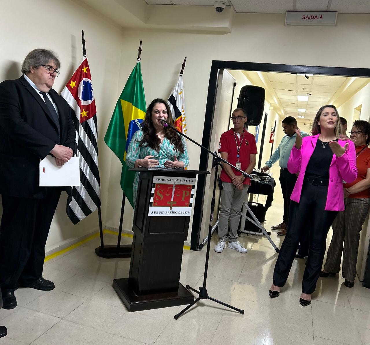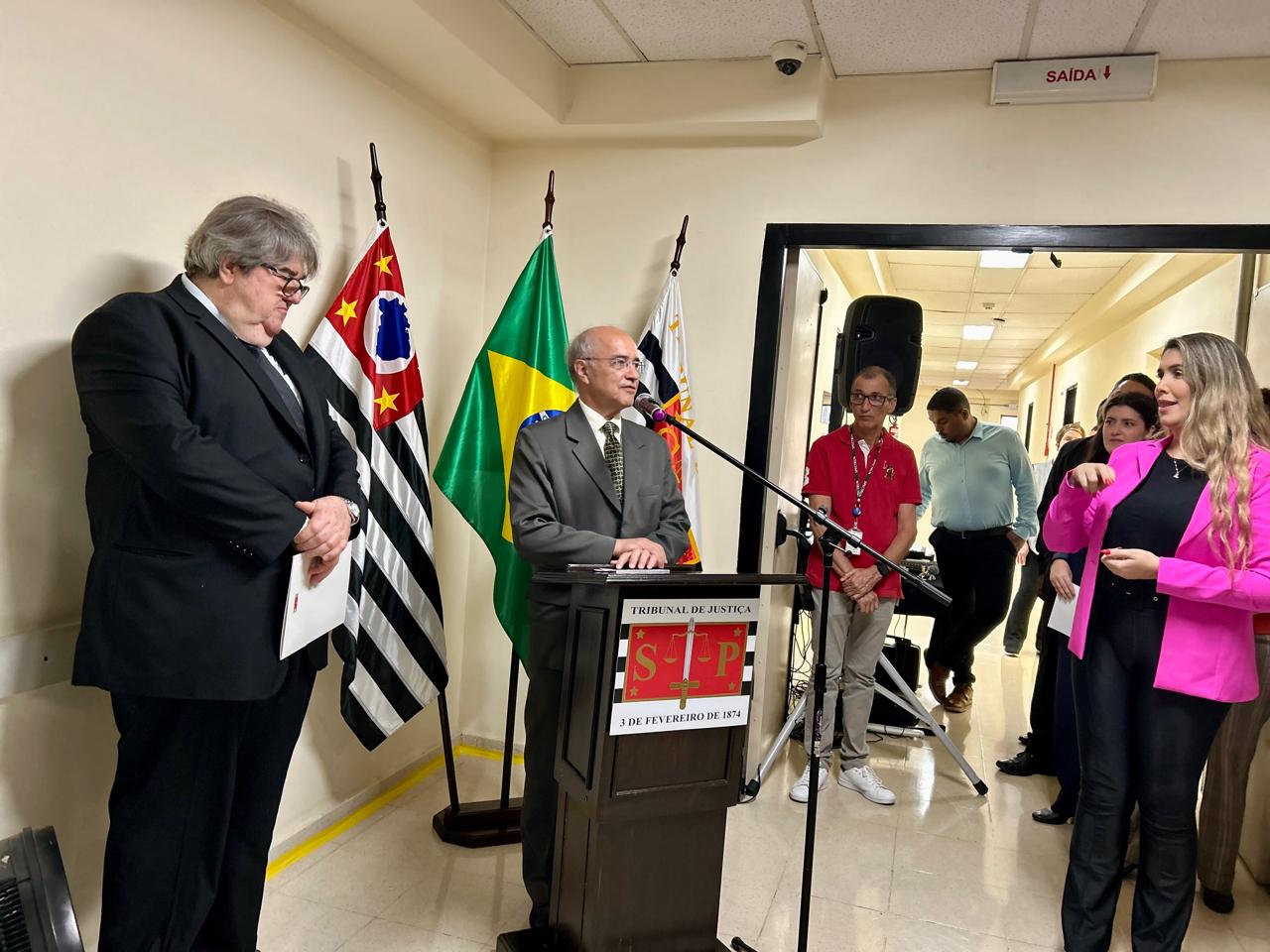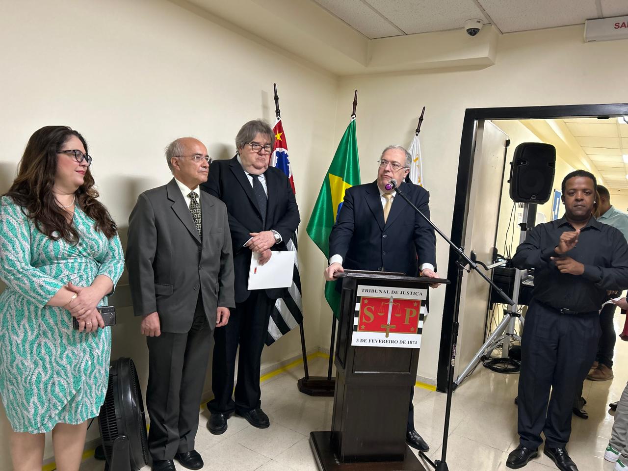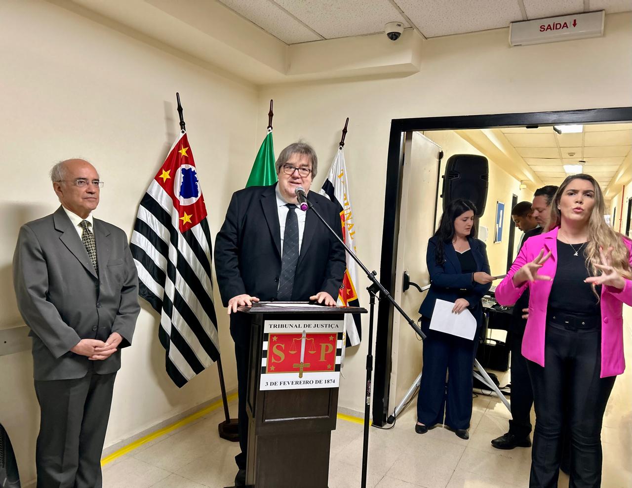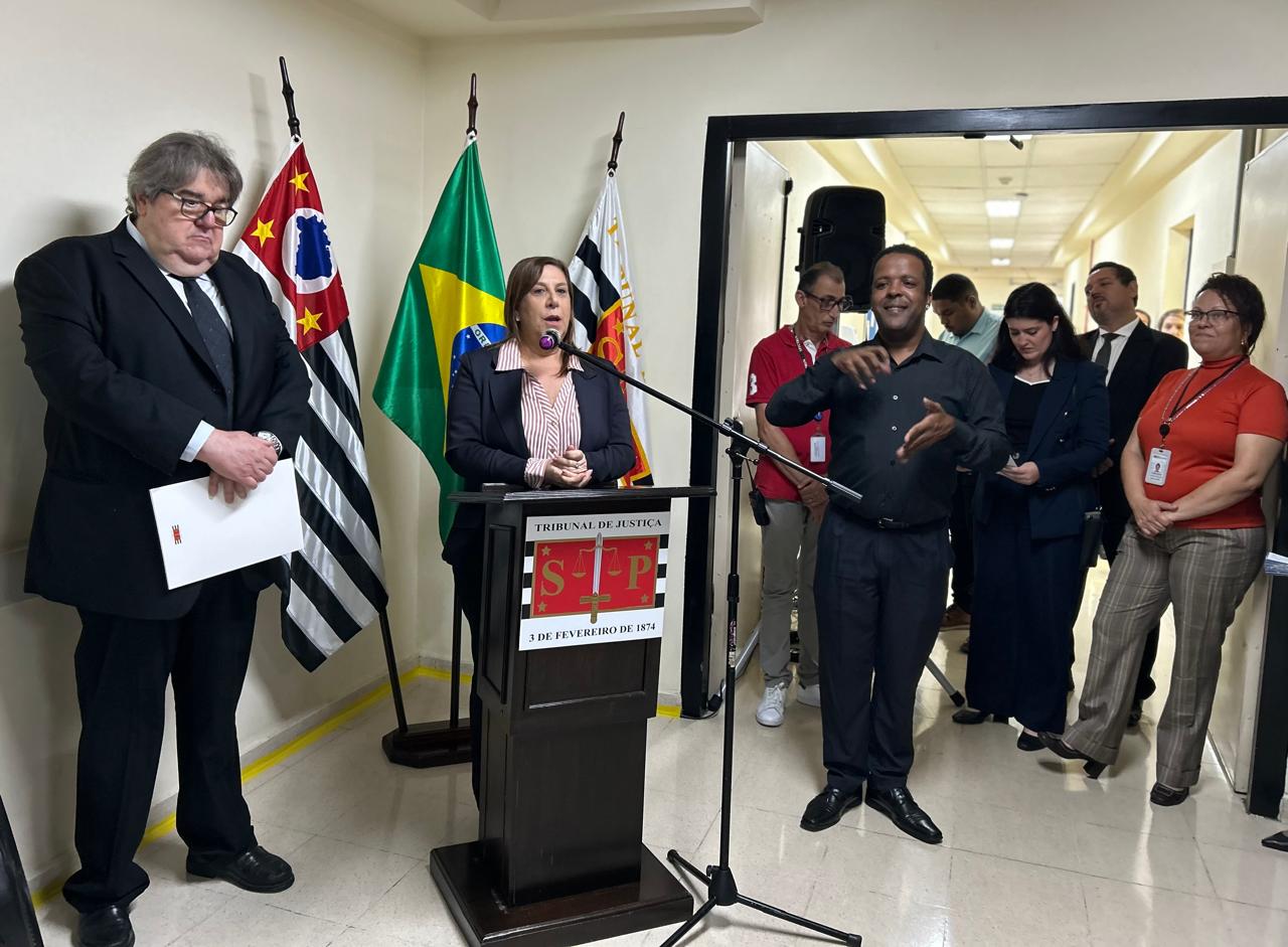 Durante a solenidade, discursaram a Secretária Municipal da Pessoa com Deficiência, Silvia Grecco; a Juíza Assessora do TJSP, Karina Ferraro Amarante Innocencio, o Presidente da Sessão de Direito Público do TJSP, Desembargador Ricardo Cintra Torres de Carvalho; o Presidente da Comissão de Acessibilidade e Inclusão do TJSP, Irineu Jorge Fava, além do Diretor do Fórum Hely Lopes Meirelles, Juiz Luís Gustavo da Silva Pires.