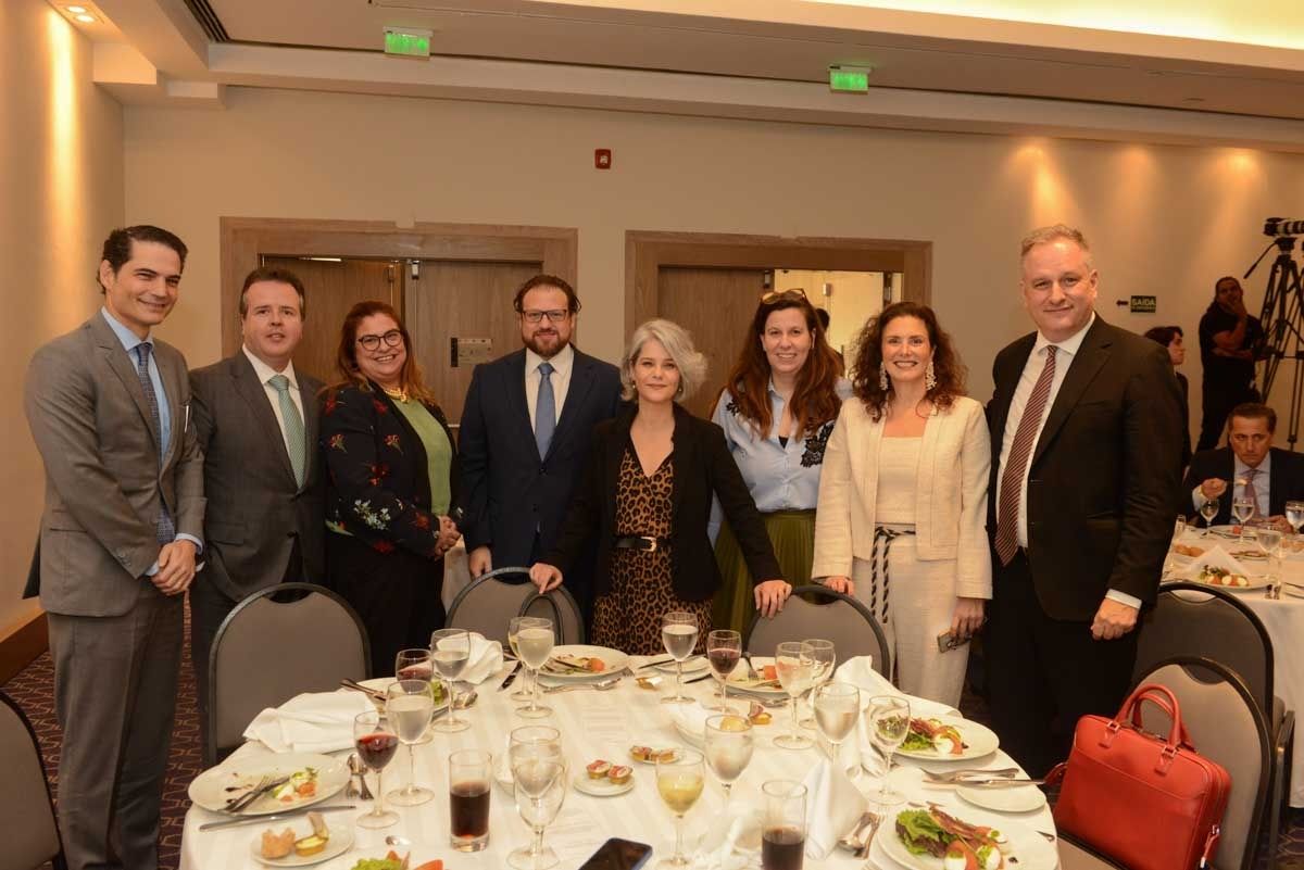 Na tarde desta segunda-feira (26/6), a AASP – Associação dos Advogados, representada pelo Presidente, Eduardo Mange; pelo Diretor Administrativo, André Garcia; pelo Diretor Financeiro, Antonio Amendola; pelos Diretores Adjuntos, Renata Mariz de Oliveira e Antonio Carlos de Oliveira Freitas; e pelos Conselheiros Ana Marcato, Patricia Anastacio e Ruy Camilo, participou da tradicional reunião-almoço promovida pelo Instituto dos Advogados de São Paulo (IASP) em homenagem ao Ministro dos Direitos Humanos e da Cidadania do Brasil, Silvio Almeida. Também prestigiaram o evento os ex-Presidentes da AASP Antônio Cláudio Mariz de Oliveira e Viviane Girardi.