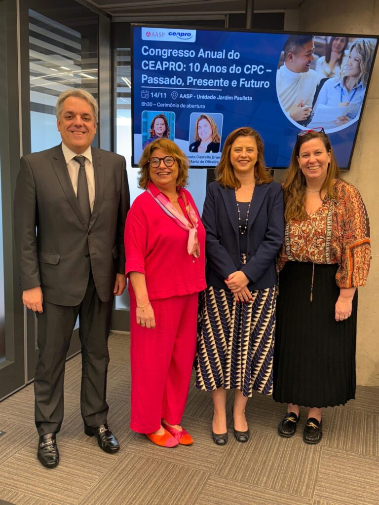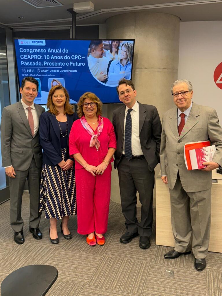 Coordenado pela Presidente do CEAPRO Gláucia Coelho, Igor Bimkowski Rossoni e Luiz Dellore, o Congresso reuniu na Unidade Jardim Paulista especialistas, que compartilharam reflexões sobre a matéria, em especial diante de temas como litigância repetitiva, cooperação processual, recursos, métodos alternativos de resolução de conflitos e desafios da advocacia contemporânea. A Diretora da AASP Ana Marcato e o Conselheiro Rogerio Mollica também prestigiam o encontro.