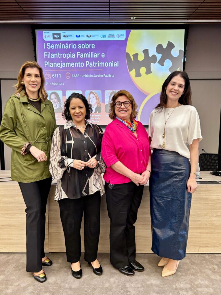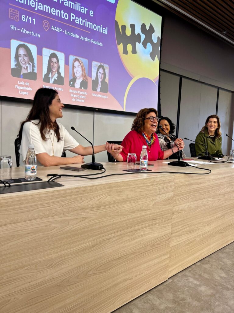 Presente na abertura oficial, a Presidente da Associação Renata Castello Branco Mariz de Oliveira deu as boas-vindas ao público, ao lado da Presidente da Comissão de Direito do Terceiro Setor da OAB-SP, Laís de Figueirêdo Lopes; da Presidente da Comissão Especial de Planejamento Sucessório e Holdings da OAB-SP, Mariana Arteiro, e da Presidente da Comissão de Direito de Família e Sucessões da OAB-SP, Silvia Marzagão.