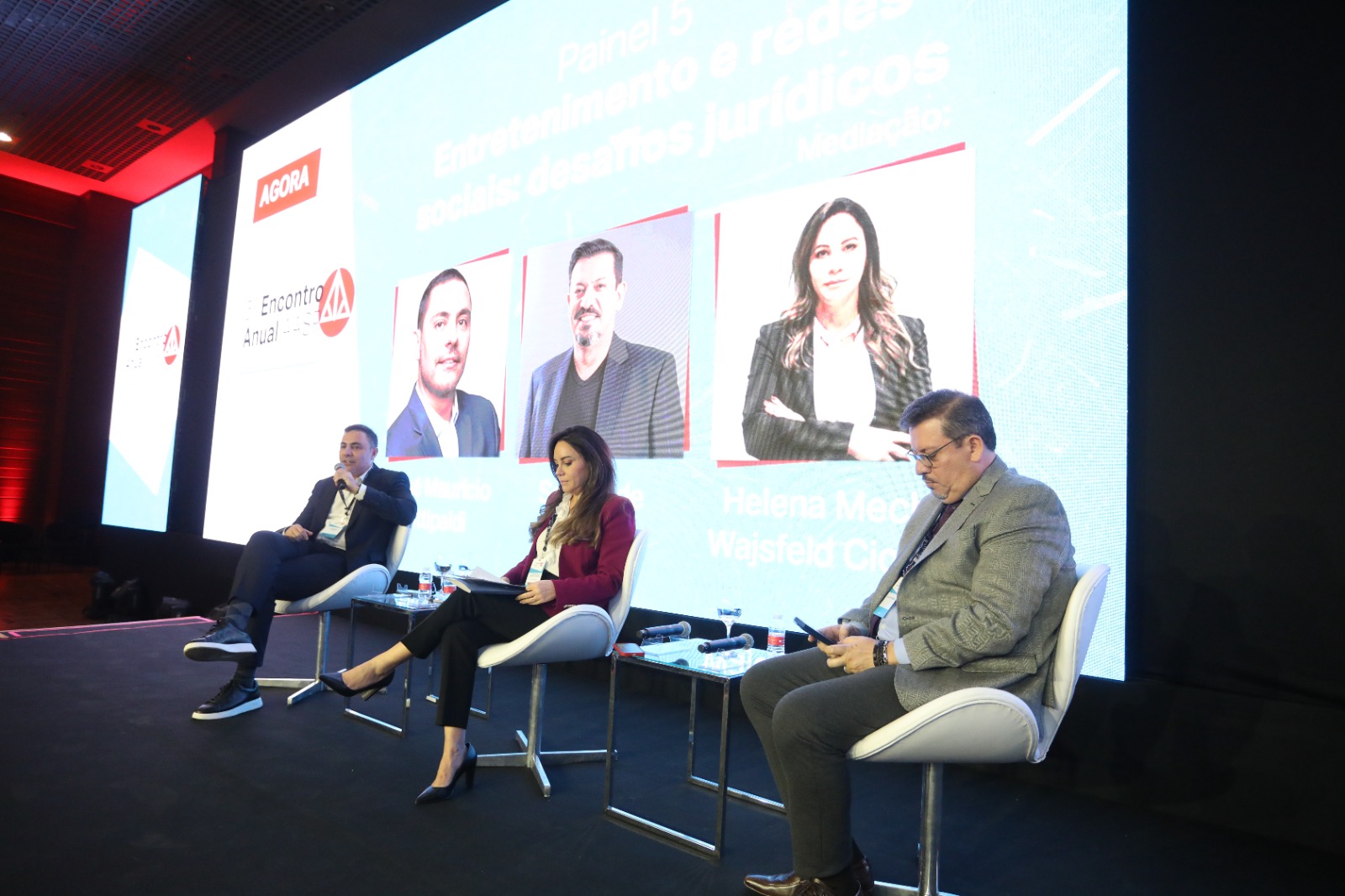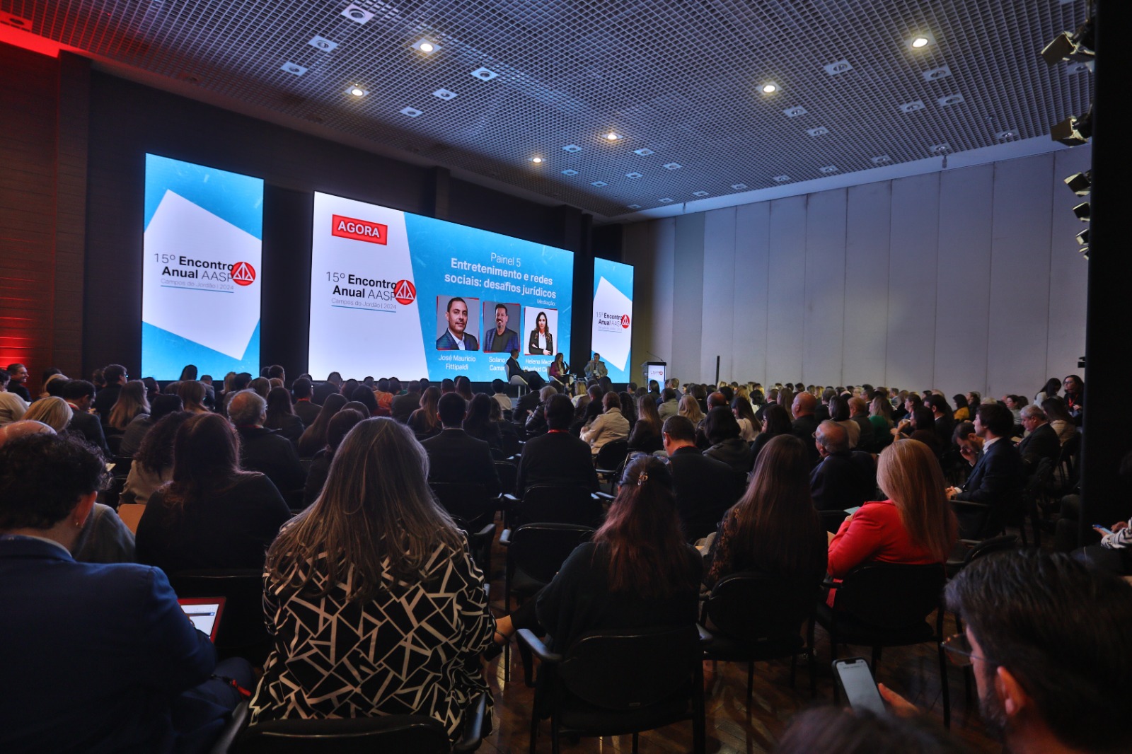 O quinto painel do 15º Encontro Anual AASP discutiu os desafios jurídicos relacionados ao entretenimento e as redes sociais. José Maurício Fittipaldi e Solano de Camargo palestraram com a mediação de Helena Mechlin Wajsfeld Cicaroni.